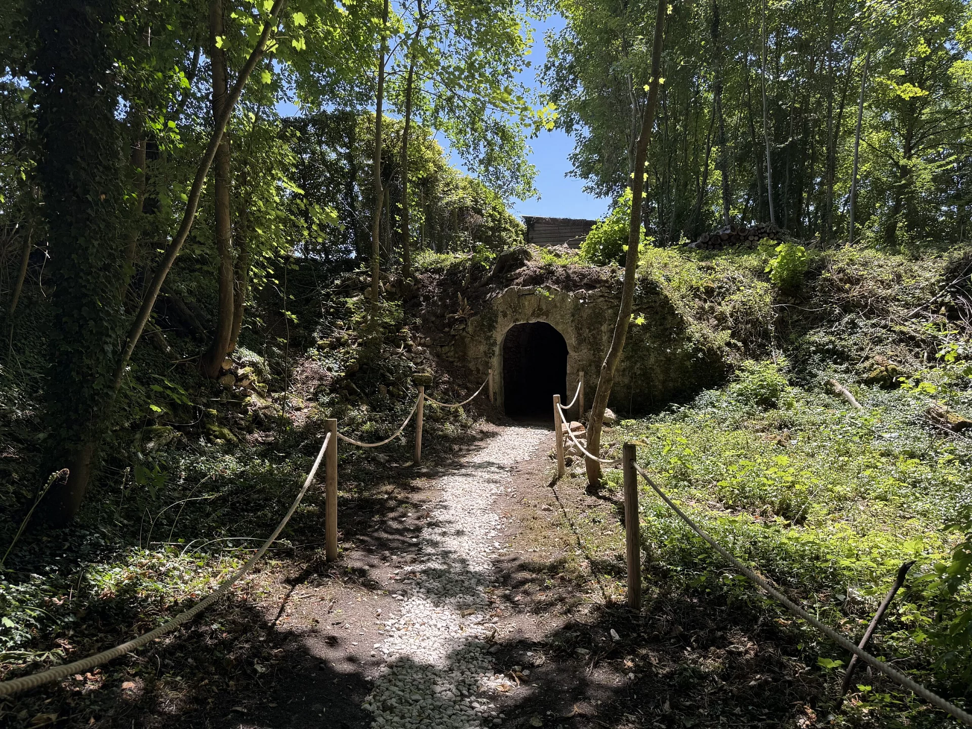 Le parcours entraîne les visiteurs à travers un souterrain voûté du XVIIᵉ siècle, avant de les guider vers des sources cachées au cœur de la forêt.